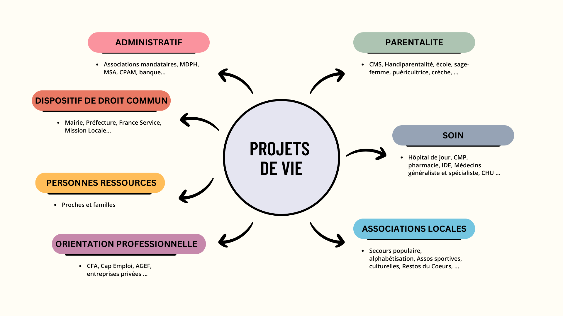 Inclusion dans la cité : accompagnement vers la participation sociale, culturelle et professionnelle.
